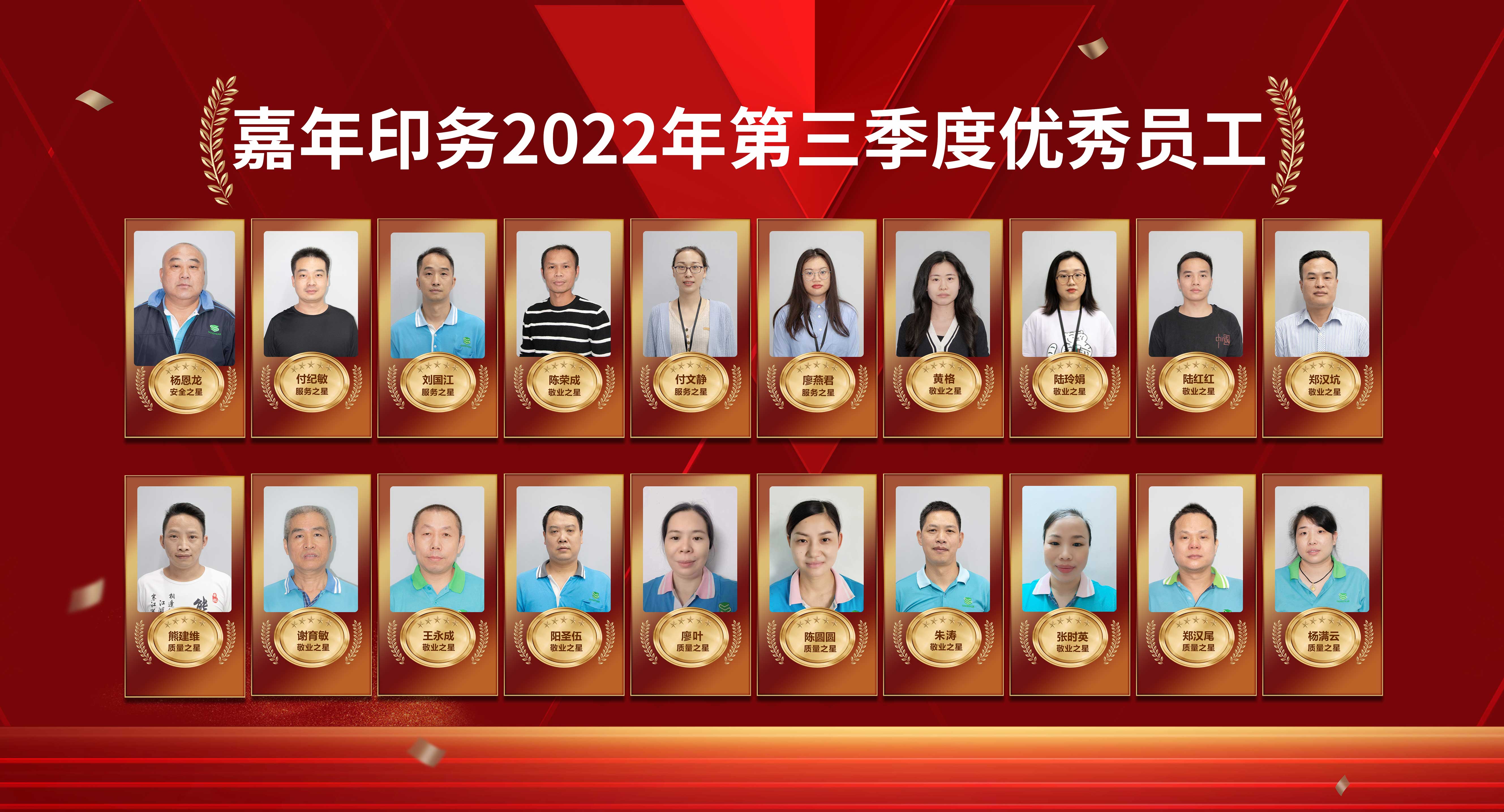 嘉年印務舉行2022年第三季度優秀員工表彰會